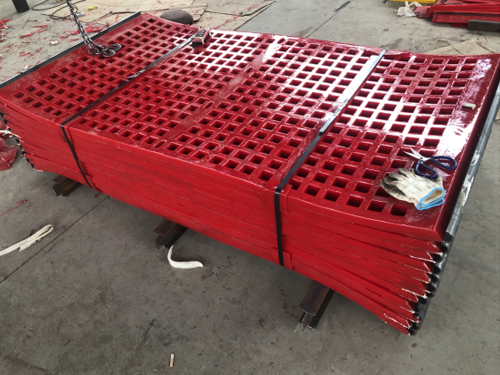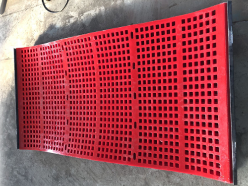 聚氨酯材料耐磨、耐油、耐水、彈性較好,制作篩板時(shí)在聚氨酯篩面中硫化鋼絲繩做柔性骨架,增加抗拉強(qiáng)度同時(shí)兼顧聚氨酯材料的優(yōu)點(diǎn),使聚氨酯張緊篩板壽命較金屬編織網(wǎng)篩板提高3-10倍。篩孔、篩面大小可定制。